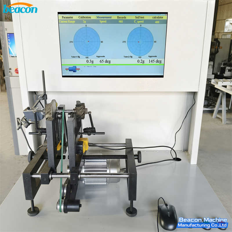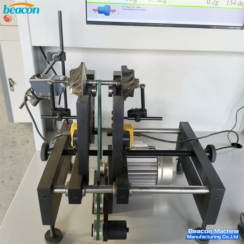 The RYQ-3A Balancing Machine is a professional-grade horizontal, soft-bearing balancing machine designed specifically for small mechanical parts, such as turbochargers. It utilizes a belt drive system and advanced balancing software on a computer display to achieve high measuring accuracy and efficiency. This compact machine can be placed on a table and is ideal for components requiring precise unbalance correction at high speeds.